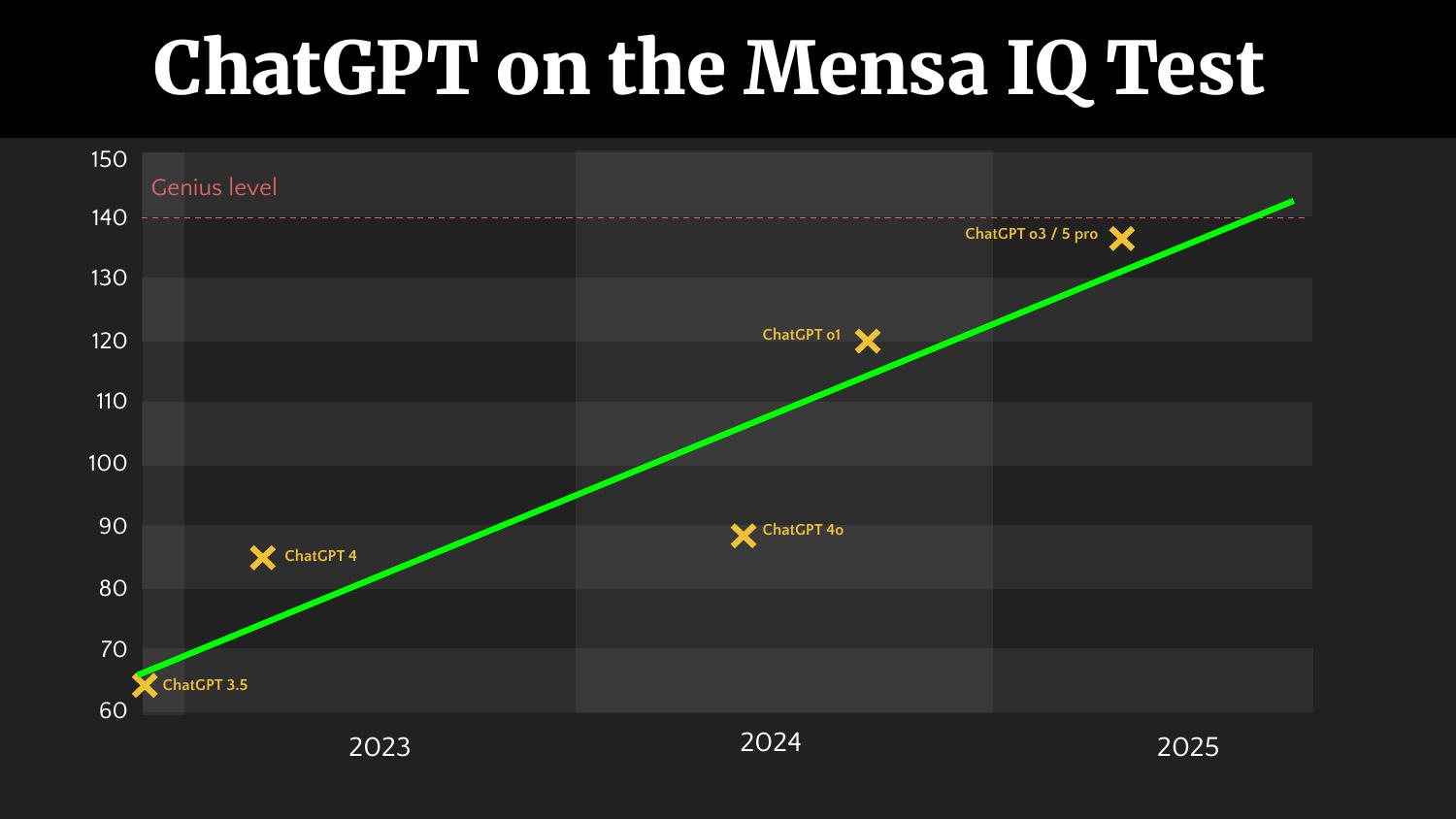 And it’s moving faster than anything we’ve ever seen. ChatGPT launched in November 2022. Now, not quite three years later, some AI models are touching genius level on the Mensa IQ test. They are already outperforming PhDs in some specialist fields. At this pace, AIs might well surpass all PhDs before anyone starting a doctorate today can do their viva.