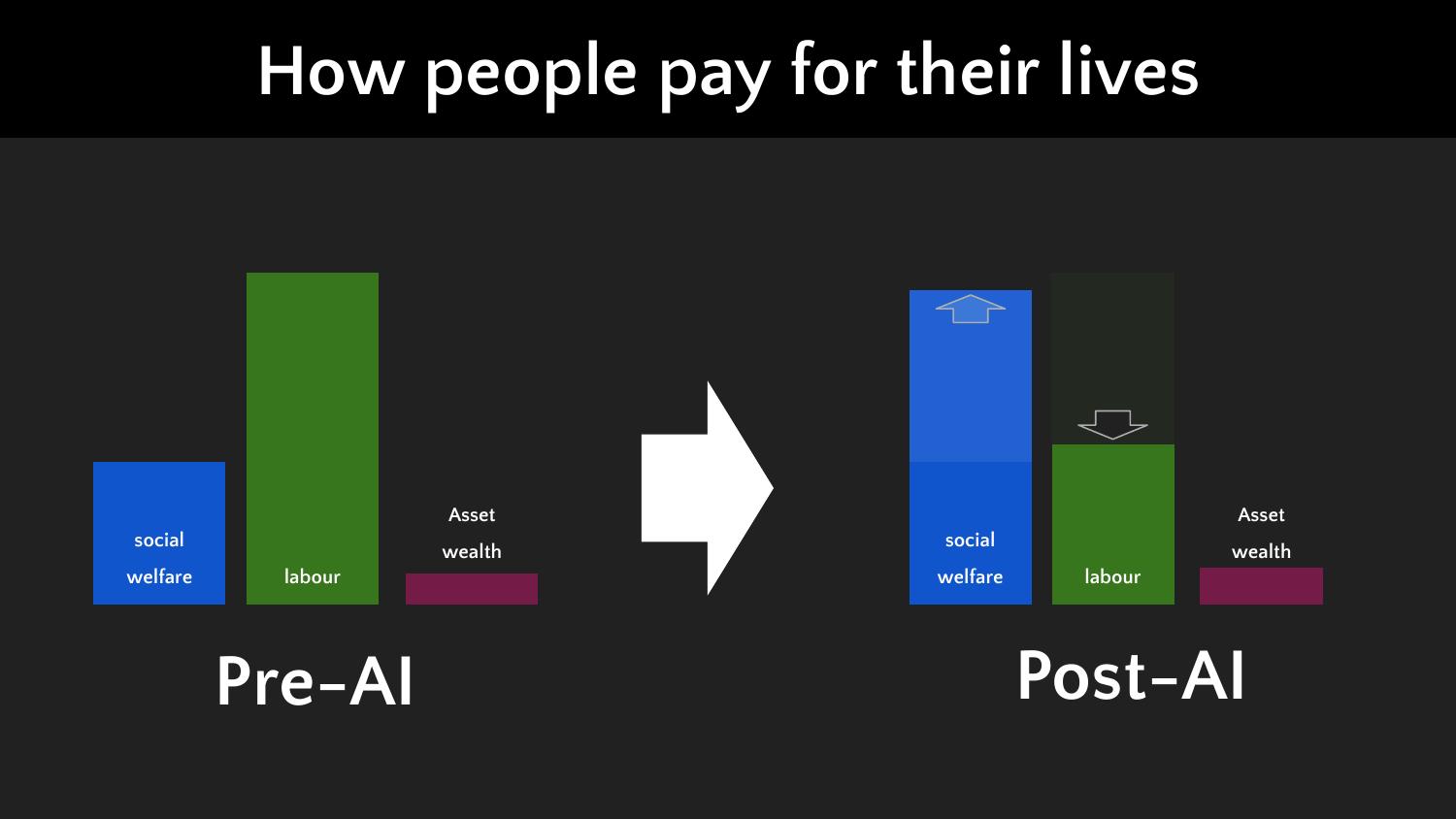 Marx framed society in terms of capital and labour. For generations, most people have funded their lives in one of three ways: through social support, through their labour, or by owning assets that generate rent. AI diminishes the opportunity for labour, and robotics may ultimately finish the job. In that future, everyone without assets will depend on the social safety net. That’s a whole new kind of society and economy that we need to prepare for.