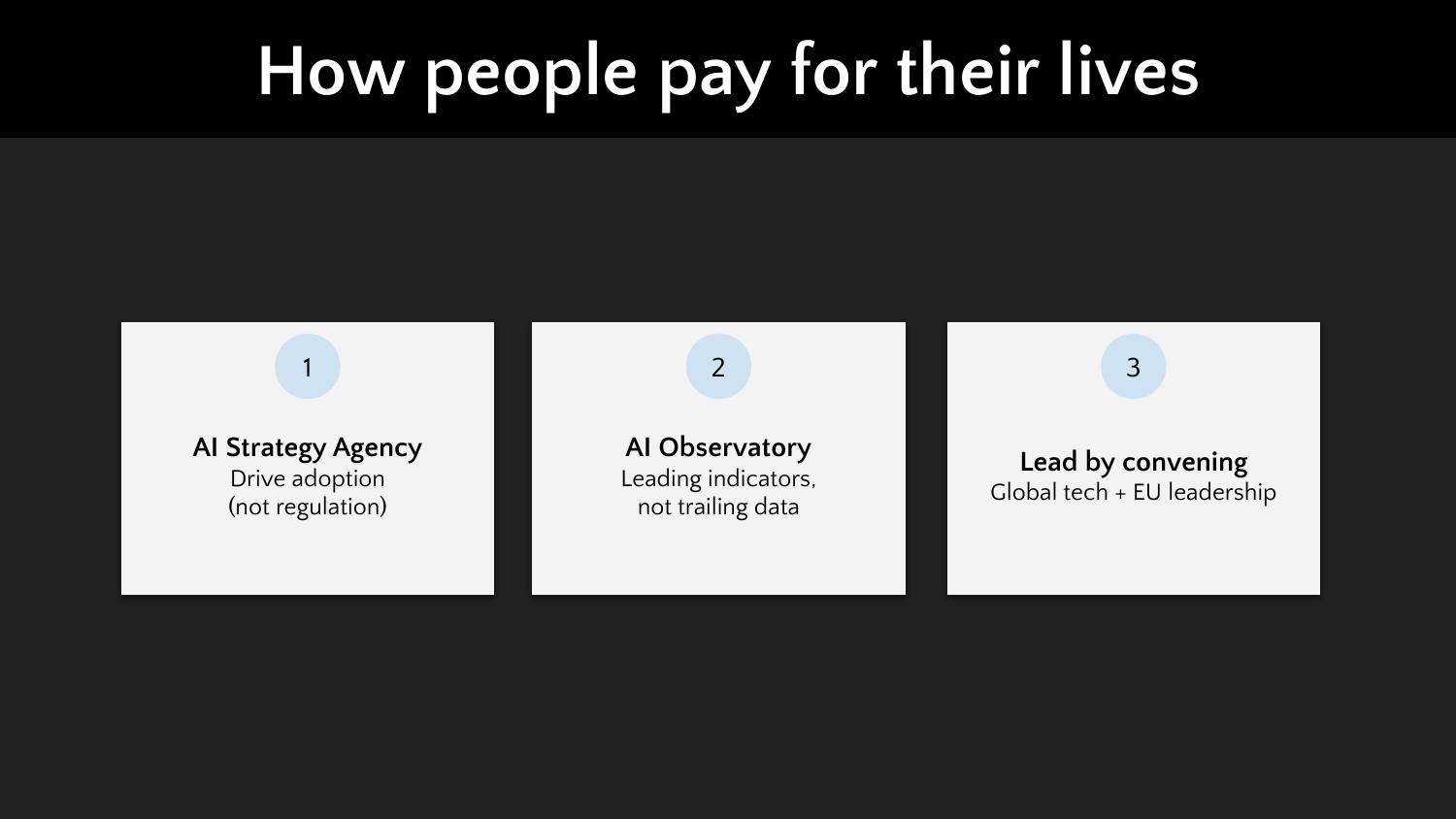Create an AI Observatory. Real-time leading indicators, not trailing data delivered years too late. Track how AI is impacting jobs, capital flows, education, security in the sectors that are affected first — and give policymakers the facts as they happen.